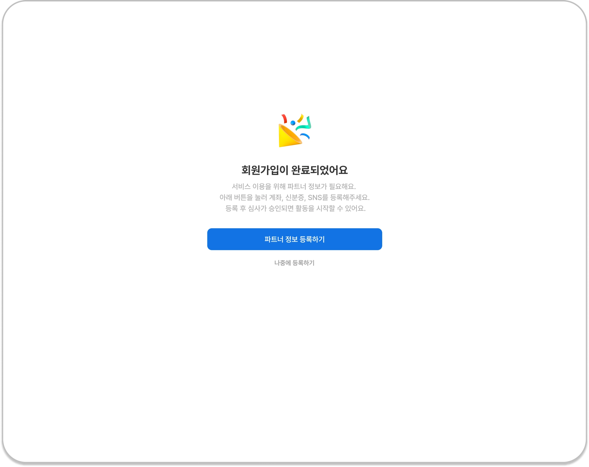 정상적으로 회원 가입이 완료되었어요. 본격적인 서비스 이용을 위해