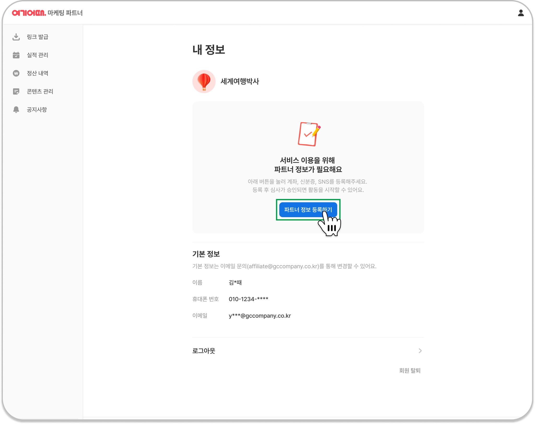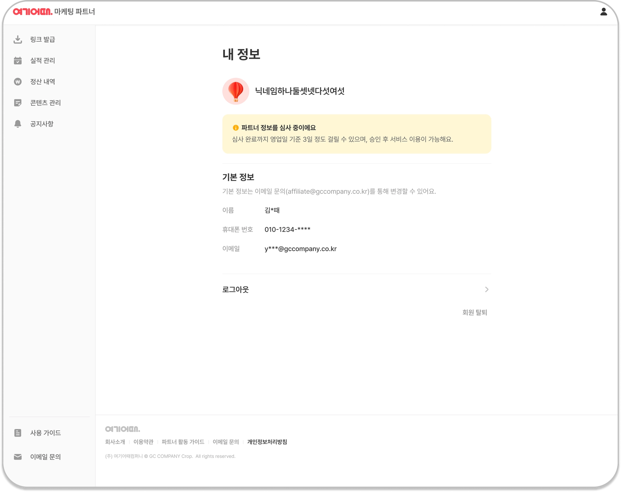 내 정보에서 파트너 심사 승인 여부를 확인할 수 있어요.
