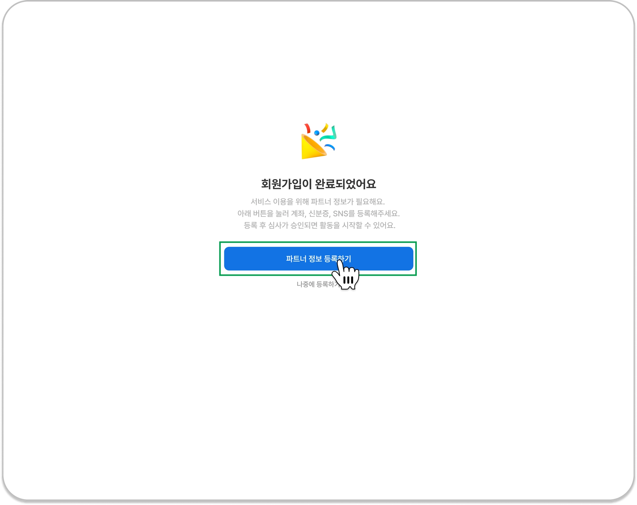 서비스 이용을 위해 파트너 정보를 등록하고 활동을 시작해보세요.